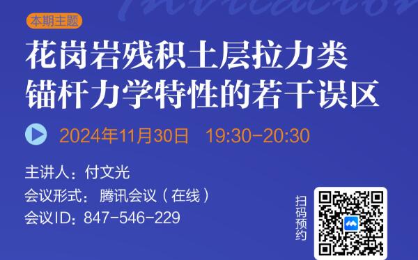 發(fā)布日期:2024-11-28 09:53巖土錨固學(xué)苑將于2024年9月28日(周六)19:30-20:30舉辦第21期,本期主題:交通基礎(chǔ)設(shè)施數(shù)智防災(zāi)減災(zāi)典型案例剖析,歡迎廣大巖土錨固領(lǐng)域愛好者參與交流。 會議形式: 騰訊會議(在線) 會議ID: 897-470-483 本期會議二維碼(騰訊...
