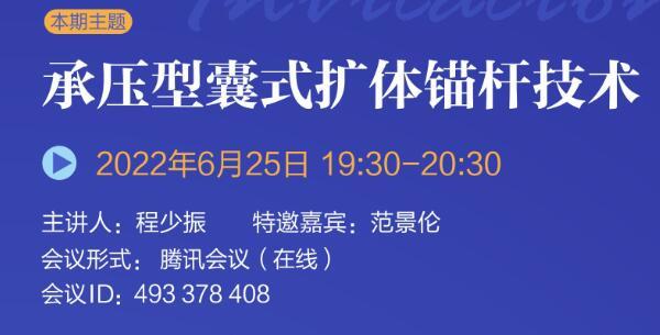 發(fā)布日期:2021-10-30 15:31巖土錨固學(xué)苑將于2022年6月25日(周六)19:30-20:30舉辦第2期,本期主題:承壓型囊式擴(kuò)體錨桿技術(shù),歡迎廣大巖土錨固領(lǐng)域愛好者參與交流。...
