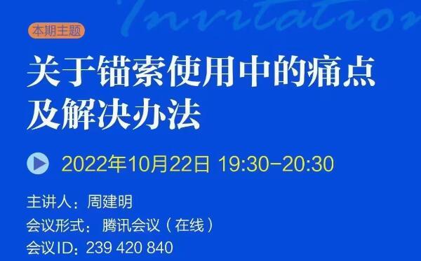 巖土錨固學(xué)苑將于2022年10月22日(周六)19:30-20:30舉辦第6期,本期主題:關(guān)于錨索使用中的痛點(diǎn)及解決辦法,歡迎廣大巖土錨固領(lǐng)域愛好者參與交流。...