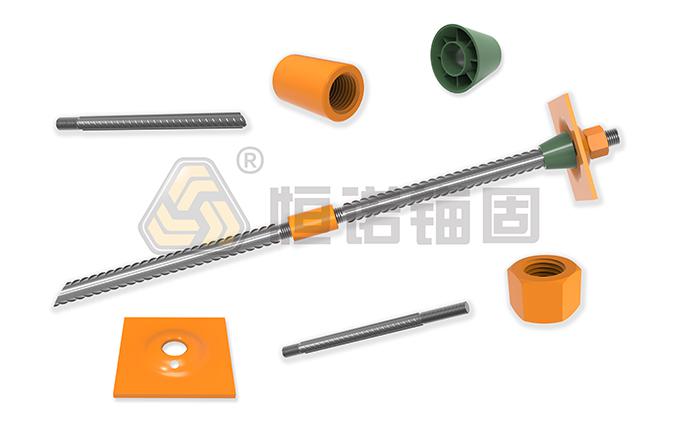 熱軋帶肋鋼筋錨桿選用的熱軋帶肋鋼筋符合國家現(xiàn)行標(biāo)準(zhǔn)GB/T 1499.2-2018《鋼筋混凝土用鋼第2部分:熱軋帶肋鋼筋》,端部螺紋采用滾壓工藝軋制成型,由鋼筋錨桿體、螺母、墊板、連接套(選用)組成,公稱直徑宜為22mm~32mm,型號(hào)包含M22、M25、M32三種。