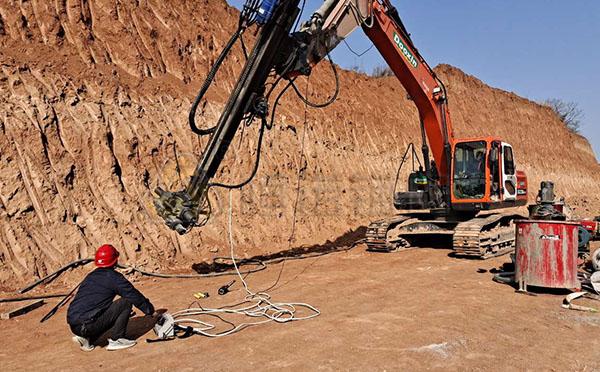 挖改鉆也叫挖改液壓鉆機(jī),是用挖掘機(jī)改裝而成,將挖掘機(jī)的挖斗拆除,連接液壓鑿巖機(jī),利用挖掘機(jī)本身的液壓動(dòng)力來(lái)工作的施工設(shè)備。挖改鉆機(jī)包含液壓鑿巖機(jī)、液壓控制系統(tǒng)、進(jìn)給系統(tǒng)和挖掘機(jī)平臺(tái)組成,通過安裝不同的動(dòng)力頭,可以實(shí)現(xiàn)不同的功能動(dòng)作,來(lái)應(yīng)用于不同的施工場(chǎng)景。挖改鉆機(jī)廣泛應(yīng)用于邊坡工程、隧道工程、水利工程、路橋工程等,具有經(jīng)濟(jì)實(shí)用、安裝方便、鑿巖、鉆孔靈活、便捷快速等諸多優(yōu)點(diǎn)。