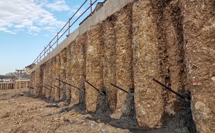 需要根據(jù)現(xiàn)有坡面情況進(jìn)行處理,如果坡面的碎石不多可以采用人工清理坡面浮渣、植被以及各別松動的巖石。如果坡面破碎且土質(zhì)顆粒小,則需要先進(jìn)行初噴混凝土,粘結(jié)坡面破碎砂土再進(jìn)行后續(xù)施工。